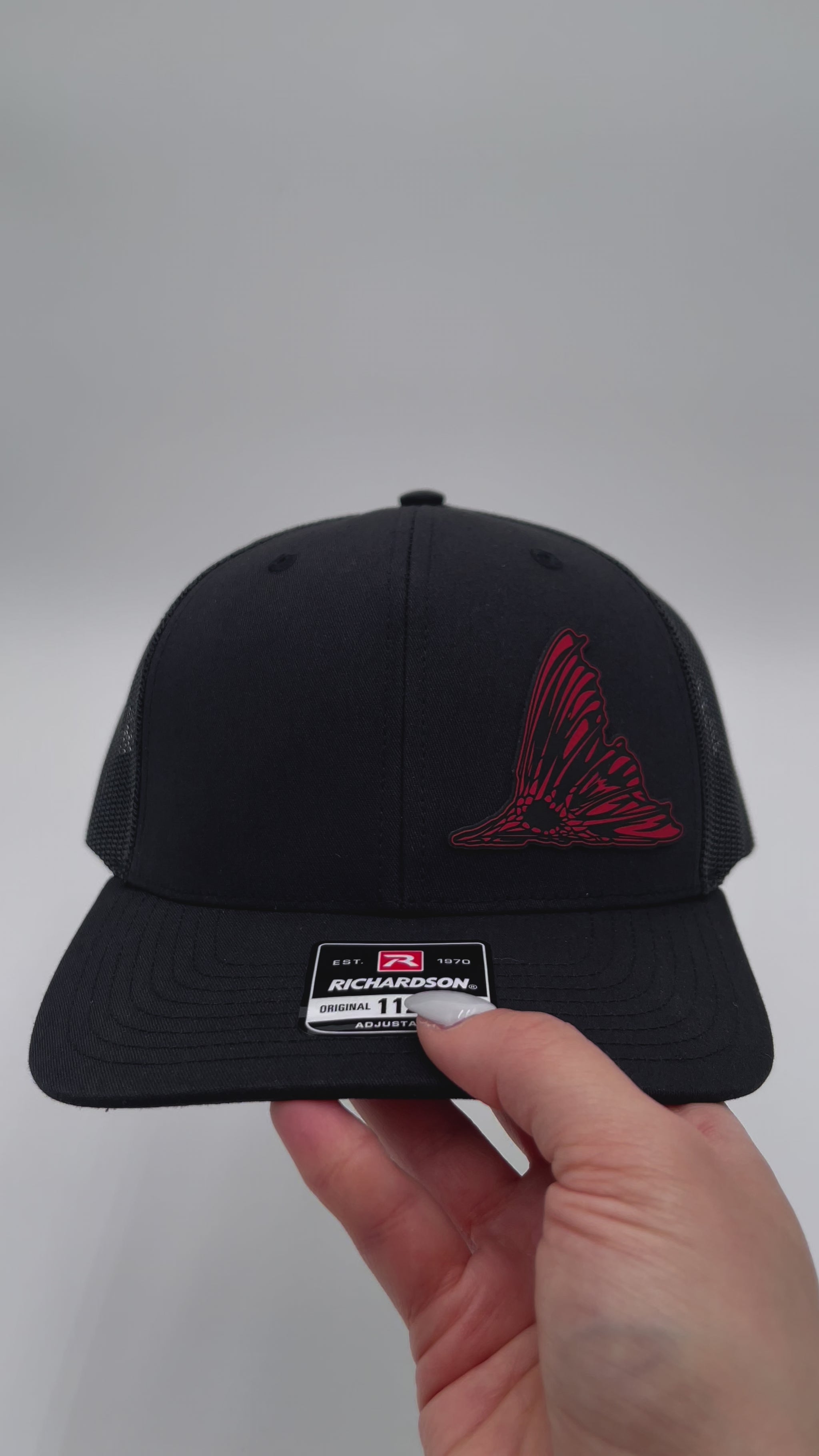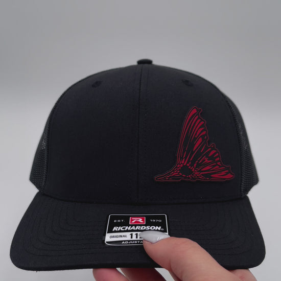 Redfish Fin - Custom Leatherette Patch Hat, Richardson 112 Snapback Trucker Cap