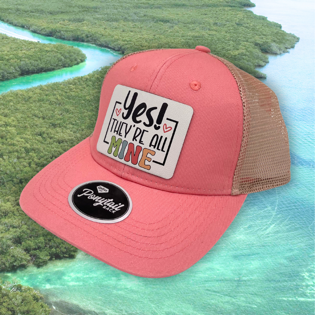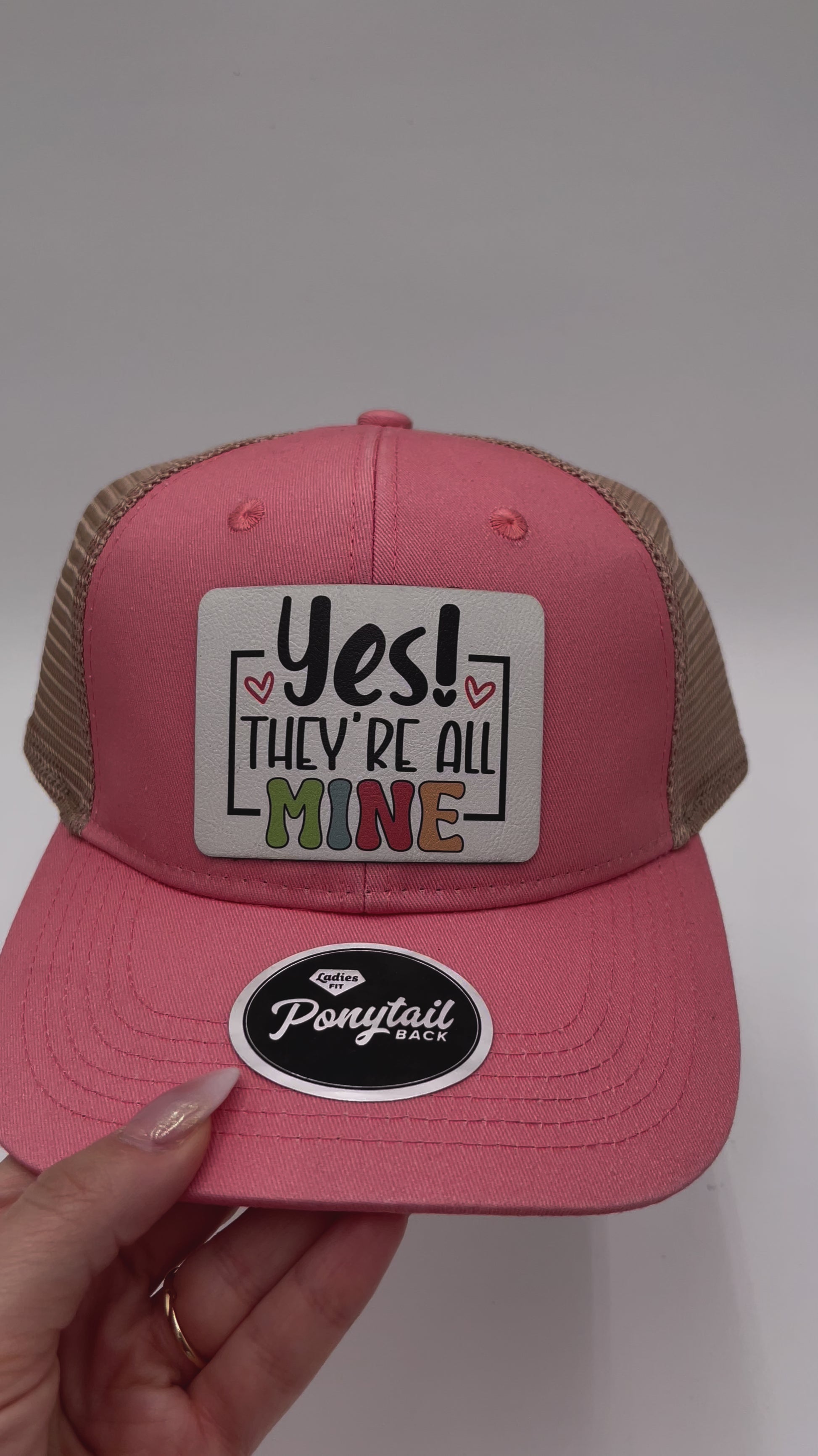 Yes! They're All Mine - Custom Leatherette Patch Hat, Ponytail Mesh Back Cap